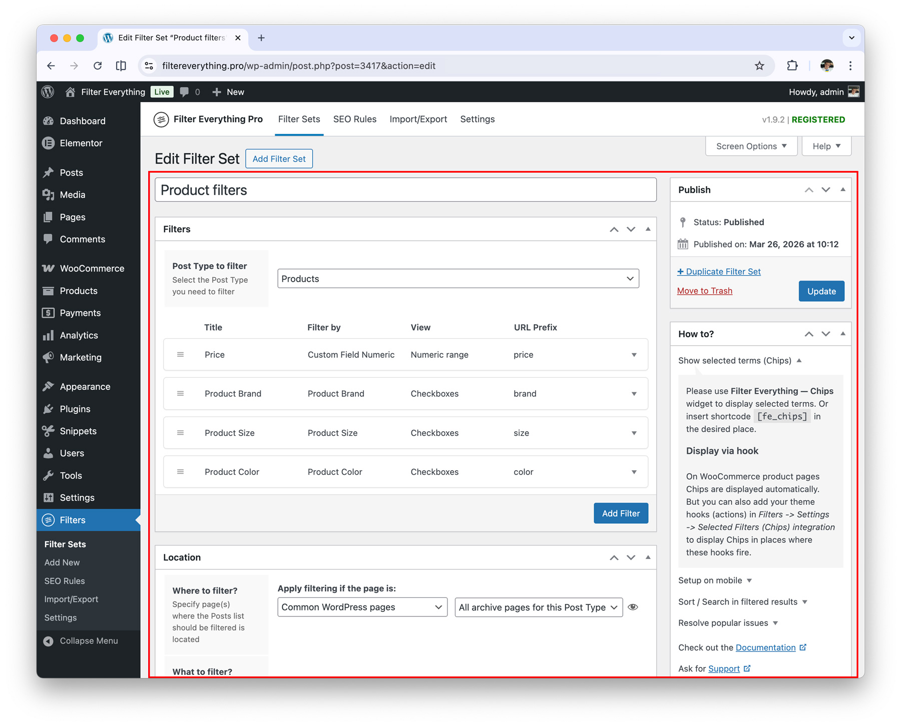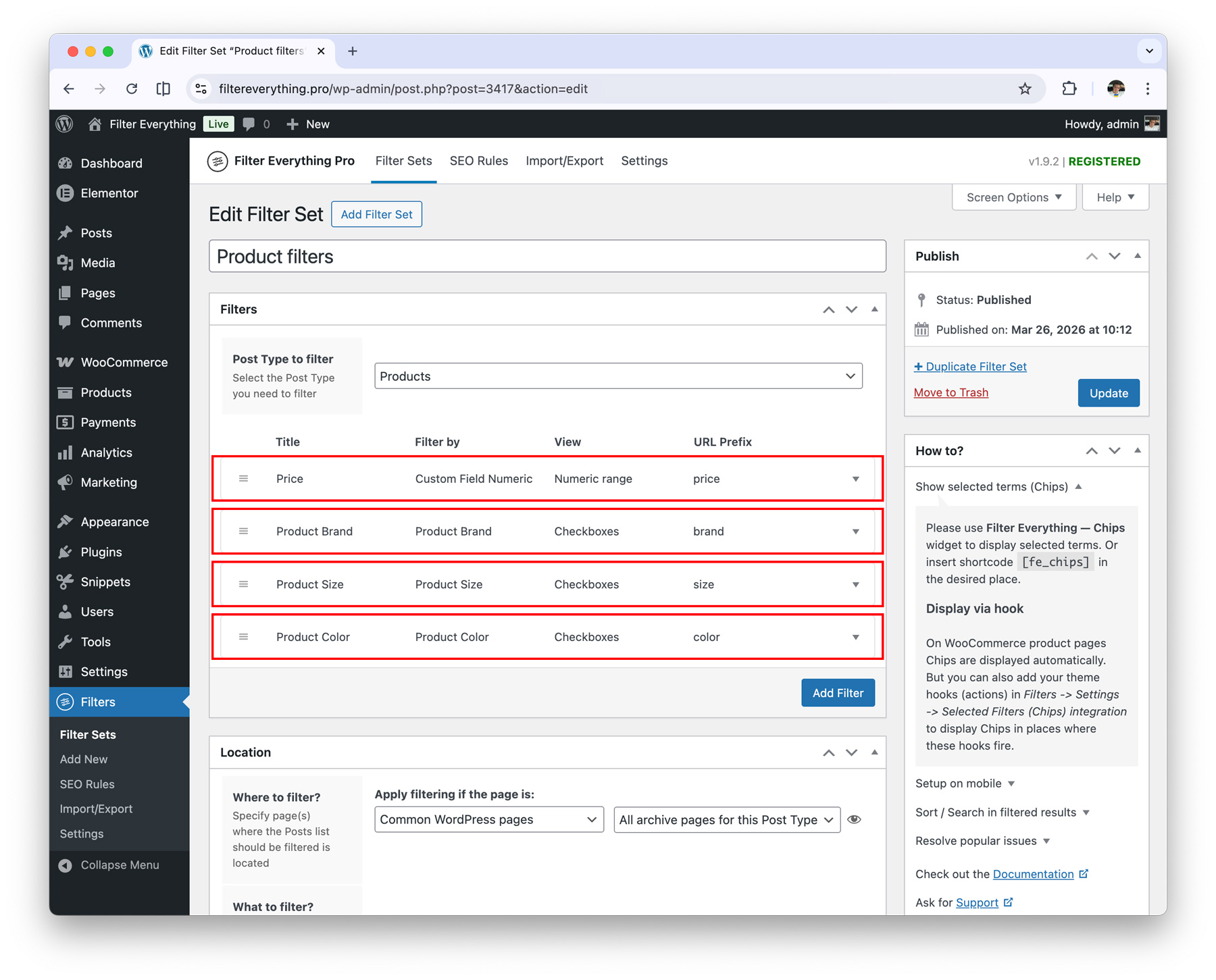 Filter Everything is built on the idea of three main elements (or three steps) that must be completed to start filtering products or any posts on the website: