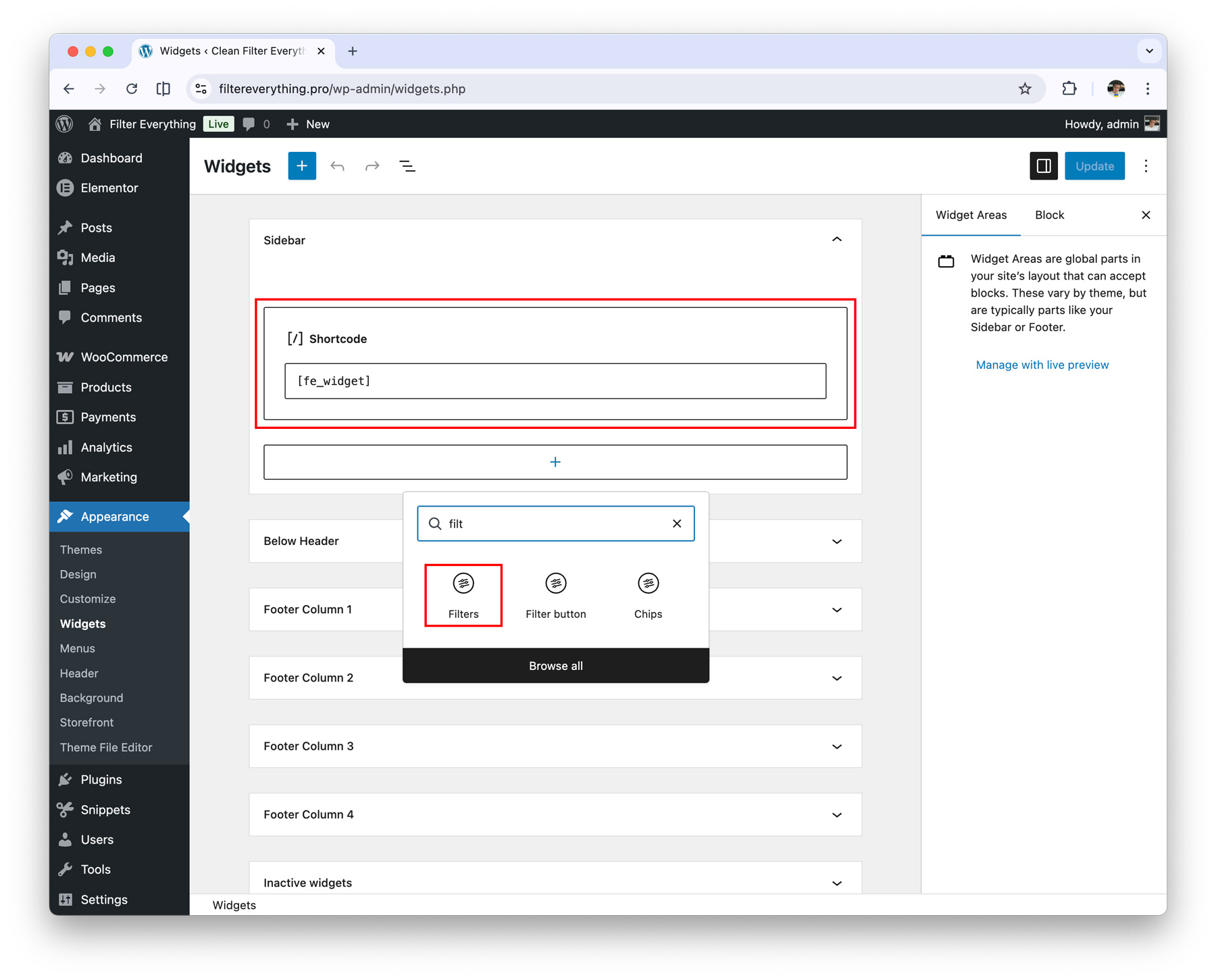 Filters Widget / Shortcode