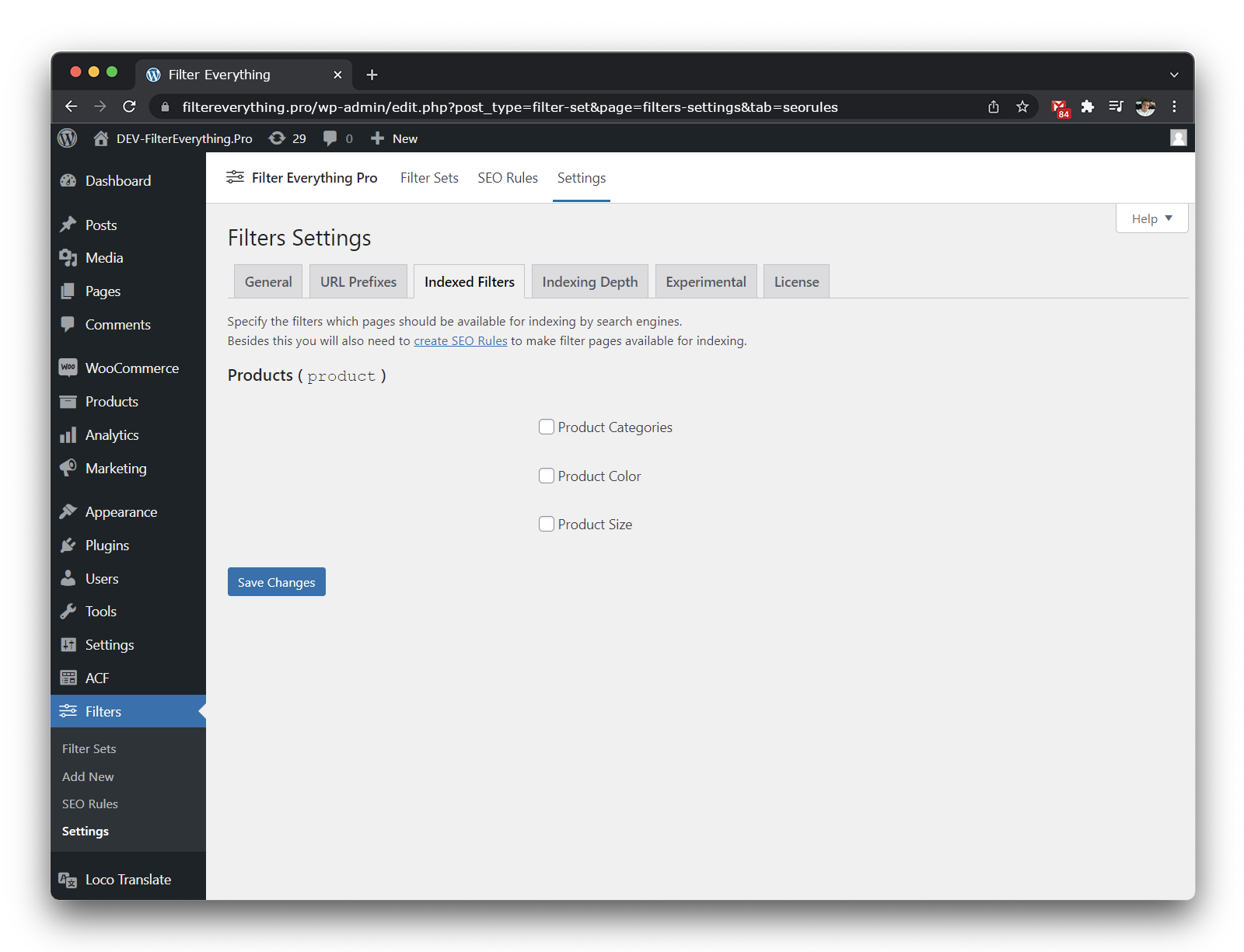 Here you can specify the filters that should be available for indexing. After creating the SEO Rules, your filtered pages will become indexable depending on your rules settings.