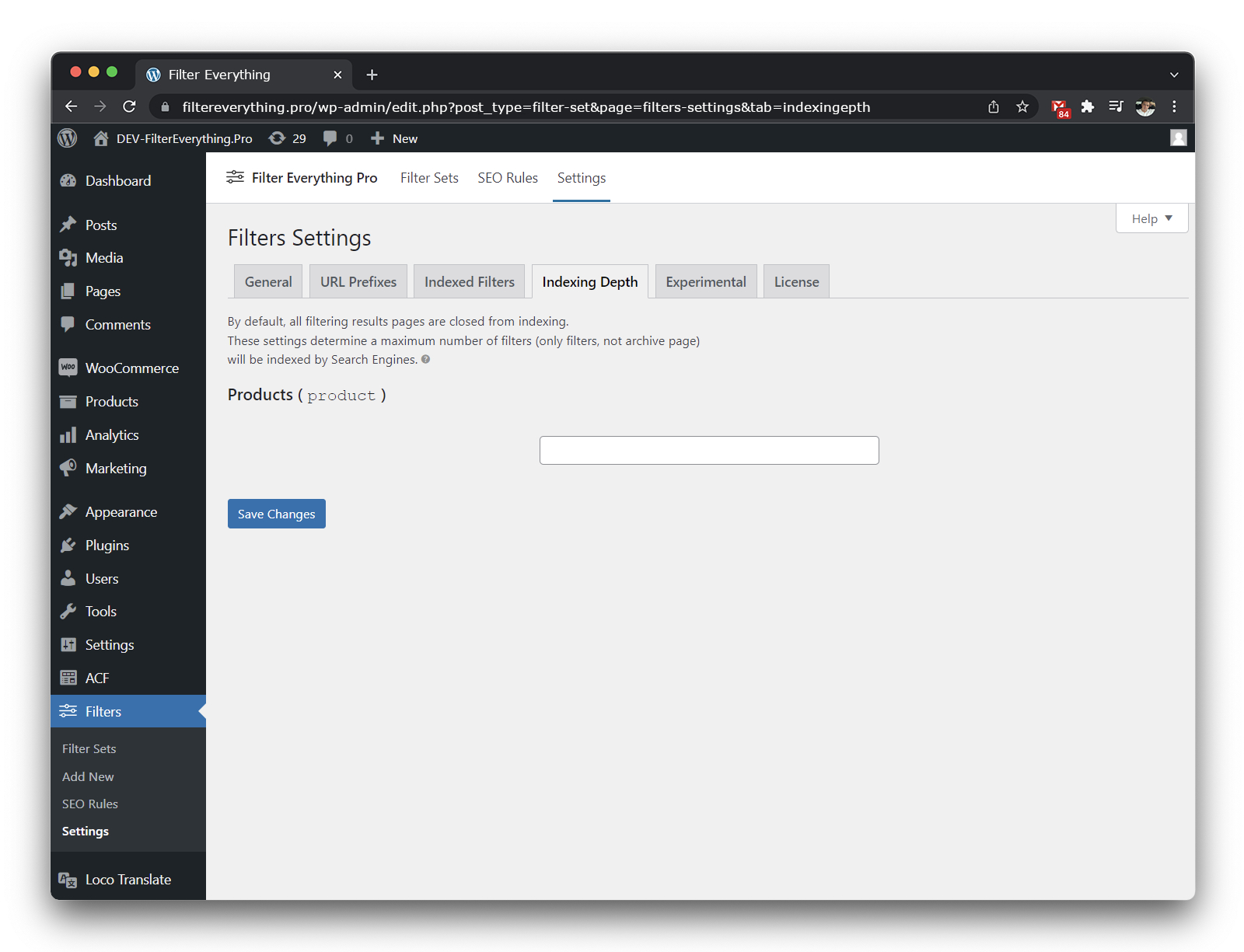 Here, you can specify the depth of the indexed number of filters. For example, if you set it to 2 and the URL contains a filter such as /color/size, the page will be indexed if you have created an SEO Rule for it. Of course, if you set it to 1, the page won’t be indexed anymore, regardless of whether there is created an SEO Rule for it or not.